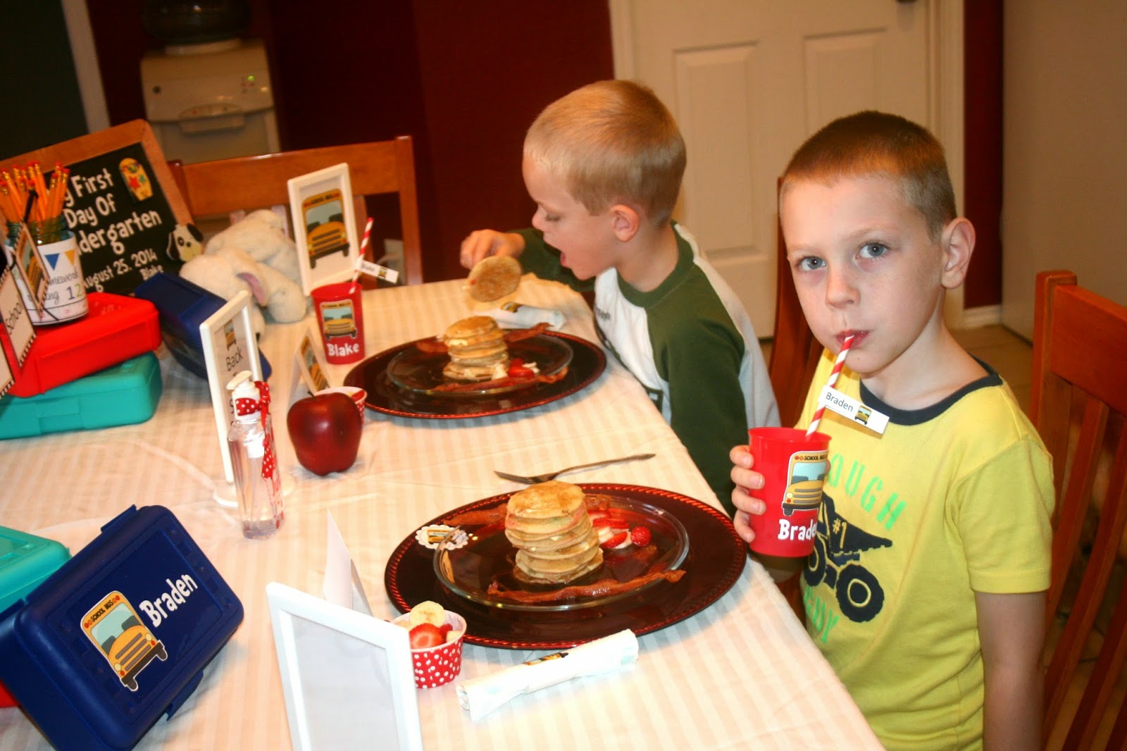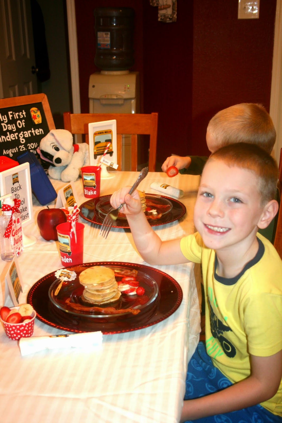 To celebrate both boys heading off to school, I decided to give them a great big Back-to-School Pancake Breakfast. Can you believe the summer is already over?!?! Well, it is for us and the boys head back to school tomorrow morning!! EEK!! This summer just flew by. It is such a bittersweet moment to have my sweet baby starting kindergarten. I am so sad to see him grow up but so excited to have him embark on this new adventure.