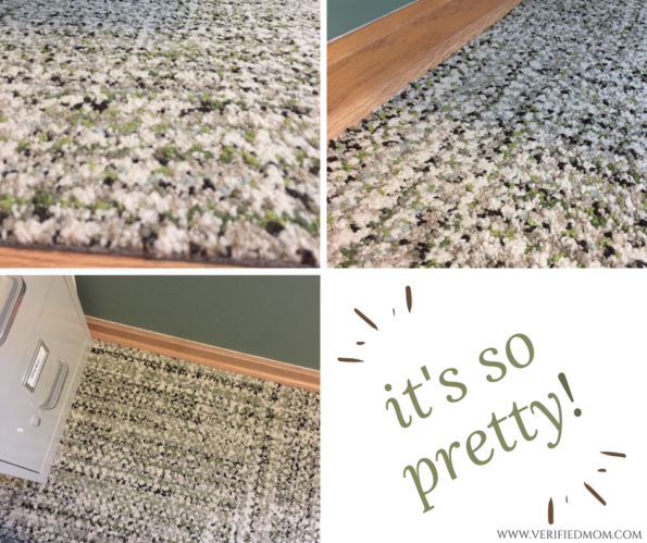 I did some measuring and I should have had my son (who’s in honors everything at school) help me with the measurements because I miscalculated and actually had to get a few more squares to make my area rug fit the way I wanted it to. I was never good at math and this project proved that I am definitely never going to understand how to calculate things! Not to worry though because I had the extra squares I needed within a few days so I could finish the project. Keep in mind when you are designing your own space that each square is 19.7″ x 19.7″ (so you can see why my math was way off)! They do provide you with a handy tool and had I paid more attention, I would not have had the issue of ordering too few pieces.