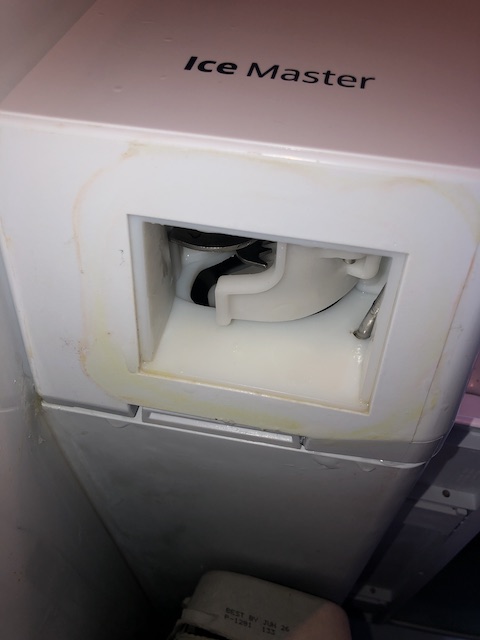 At the time of the second repair, parts of the icebox were replaced, including the rubber stopper on the actual door. The rubber stopper on the door was turning yellow and started getting crusty around its edge. Water had also started to leak and would pool under the deli tray. The ice maker was replaced with new pieces and sealed yet again.